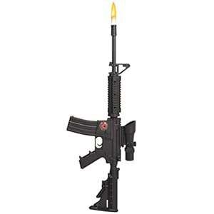 We saw this in a store at our mall and my husband loved it. Unfortunately it was marked up way too high. Thankfully I came across it here on Amazon and was able to get it for him. He has a tactical barbecue apron that I got him for Father's Day and it goes perfectly with it! He already can't wait until summer so he can use it to light the grill while wearing him tactical apron. It's an awesome novelty gift for any gun nut! Definitely a fun conversational piece in our family! And the best part is that it's refillable so you can keep using it!