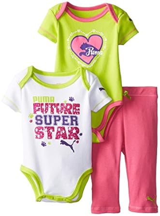 PUMA Baby Girls Newborn 3 Piece Shocking Pink Creeper Set