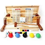I purchased this croquet set for my father's 62nd birthday present as he loves the easygoing and laid-back style of the game, and for the price of this set compared to others I felt that I couldn't go wrong. Oh boy. How wrong could I be when it came to quality and durability. This set is a complete croquet set to be certain: it has the mallets, wickets, pegs and balls, but upon receiving the set I soon realized that the balls were simply hard plastic, and the mallets aren't sturdy in the least. Some of the mallets aren't able to be totally screwed in tightly so it wobbles at times, and after several hard hits the plastic on the end begins to come lose.