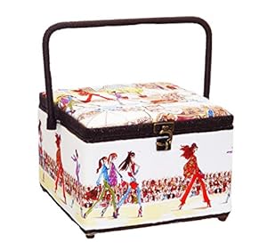 Dritz St. Jane Sewing Basket Large Square (10.5" L x 10.5" W x 7.75" H); Parisian in Cream, Red, Lt. Brown, Blue