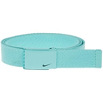 Webbing with tonal enamel clamp plaque buckle with cutout swoosh logo.