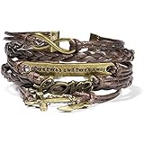 • Susenstone®Handmade Infinity 8 Hope Rudder Anchor Leather Weave Jewelry Bracelet