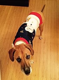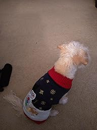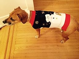 Super funny sweater, well made and it actually keeps my Jack Russell Terrier warm. He usually hates wearing sweaters because of the fit. But he had no problem with this one.