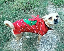 I'm really pleased with this dog sweater. Its better quality than most. For some reason I hadn't realized that the wreath had bells on it. They jingle a lot when she walks around, which is super cute and adds to the Christmas "ugliness". I read the other reviews, but was still unsure around the sizing. I have an 8lb (17" chest, 15" from neck to tail) Chihuahua-Pomeranian mix. I ordered the "red wreath" in a medium and the "black snowman" in small. Honestly, they both fit pretty well. They only shrunk mildly after washing, but the fabric also go softer.