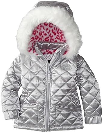 Steve Madden Girls' Baby Girls' Pongee Jacket with Quilting Faux Fur Trim