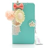 • ACC5Star(TM) Fashion Bonzer Bling Diamond Cristal Bow Bowknot Slot Card Flip Case Cover Skin for Samsung Galaxy Note_3 III N9000 + High Quality Random Color Stylus + 10*15 Cm Green Soft Clean Cloth with Logo