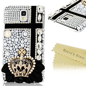 • Samsung Note 3 Case - Mavis's Diary 3D Handmade Bling Crystal Crown Rhinestone Cross Diamond Hard Case Black Cover for Samsung Galaxy Note 3 Note III N9000 N9005 N9006 with Soft Clean Cloth(Back Cover)