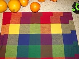 First - I liked the colors: red, green, blue, yellow and a variety of shades where the threads intersect between the solid squares. My house has 3 guys in it, they were good with the look too - bold colors, good weight, and no flowers. I felt the price was very reasonable, so I purchased 4 sets to replace my mismatched collection of everyday cloth napkins. The napkins were 20" x 20" when I removed them from the packaging. I also removed the stick on label and cut away the white tag (I mention this because I missed one of the stickers and it was a mess to remove after washing and drying.) They are cut on the same fabric squares, so the napkins match each other, which is hard to tell the way the Amazon photo shows them stacked. You will need to fold them the same if you want them to look the same on the table. I just remember to start with the blue and the purple corners and it works out. Then I chose to wash them in my normal load of darks - warm wash, cold rinse, method free & clear detergent with vinegar in the rinse, then tossed them in the dryer - medium heat in a sensor dry cycle. Because I chose to ignore the recommended washing temperature, I expected shrinkage. My napkins are now 18.5" x 18.5", which is perfectly acceptable to me. Some came out of the dryer a wrinkled mess & all of them needed to be ironed - so I spent 60 seconds or less ironing each napkin. Since I expected they would need to be ironed, this did not bother me. I have this experience with cotton napkins and find the cotton relaxes over time & usually needs no ironing after several times through the laundry. Some of these have been through the laundry 5+ times and they have just about reached the fold and store level, although now I kind of like the crisper look of the ironed napkins. I'll take a little ironing over polyester napkins any day. I ordered 2 more sets, so now I have 6 sets / 24 of these napkins. I feel these are a good value and I expect we will get many years of use out of them.