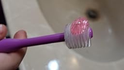 My granddaughter thinks it is fun to brush her teeth with the new toothbrush. When I put toothpaste on it, I put a small amount and then flatten it around the toothbrush bristles in a thin layer. She is brushing more intently now trying to reach everywhere and enjoys rubbing the toothbrush up, down and around in circles. She usually makes funny faces at me while brushing her teeth and sticks her tongue out to brush it. The toothbrush seems to amuse her since she can brush upper and lower teeth at the same time when she slightly closes her mouth. I am glad I chose this toothbrush for her, it's nice to see her happy brushing her teeth instead of dreading it.