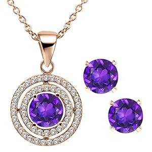 2.89 Ct Round Purple Amethyst 925 Rose Gold Plated Silver Pendant Earrings Set