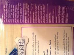 When Bear arrived 3+ years ago, I was a new dog Mom. I started using Blue Bones dental chews immediately to entice Bear into his crate at night. I have been pleased that these seem to be effective because in three plus years, the vets Bear has seen have not recommended a dental cleaning. Bear has amazing jaw strength so over time I have had to remove the Himalayan chews and dehydrated sweet potato chews from his diet. This is because he can break off large chunks with sharp edges and does not chew them before swallowing. I have never given him animal bones for the same reason. Bear loves his blue bones and his Mom does as well. Finally, although the bones are a bit pricey, not only is dental cleaning expensive but as with any surgical procedure, the anesthetic involves risk.