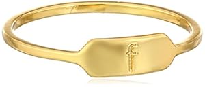 Looks just like photo. Very dainty, which is what I wanted. Feels smaller than size indicated. Described as size 6, fits more like a 5 - 5-1/2. I bought it to wear on my middle finger, but it's a little too snug for comfort. I'm wearing it on my ring finger and it spins around because I normally wear a 4-3/4. Very cute in letter "k". Can clearly read the letter itself. Finish is very shiny. I just got it, so can't say how well it will wear over time. I really like it and would give 5 stars if not for the sizing problem. UPDATE: Tarnishes easily. They basically tell you not to get it wet or get any lotion or soap on it because the material is "special". Basically, the way the average person wears a ring, this finish will not hold up. I'm still giving it 3 stars because if you can manage to take it off every time you get your hands wet or apply lotion, maybe it will keep it's color.