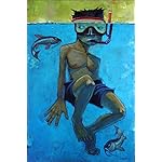 ** 12 x 09 Cotton Rag Archival Print ** I paint astronauts and, sometimes, dinosaurs. Stanley Kubrick's 2001: A Space Odyssey was released in 1968, well before I was born, so I have no firsthand knowledge of how it was received. I don't know if people really believed we'd be living in space in 2001, if we'd have robot butlers and flying cars, geodesic lunar homes, and genetically reconstituted dinosaurs helping or eating us. But from Lost in Space to the Jetsons to Jurassic Park, it seems that popular culture has fostered this space-age perception of the future. Generations raised on these TV shows, movies, comic books, and novels are now grown and living in a future filled with mini vans, Starbucks, iPads, and Hip Hop videos. In many ways, the year 2001 failed to live up to expectations. And yet the world today is peculiar in ways unimagined in 1957, when Sputnik was launched, or in 1968, when 2001 was released, or even in 1994, at the dawn of the internet. The present is in fact a very unusual place, and it's strangest in the ubiquity of things we take for granted. The astronaut in my paintings is simply here to explore the present.