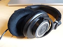 These ear pads made my Audio Technica ATHM50 much more comfortable. The height of the ear cavity is about 7cm vs the 6cm of the stock ATHM50 pads, and the velour material is much more comfortable than the ATHM50's pleather. I didn't hear any audible difference between the stock pads and these, although I didn't do a careful comparison. The improved comfort makes listening to music with these more enjoyable. The fabric backings of the two pads are made of similar materials and have similar permeability, so any actual sonic differences are likely to be minimal.