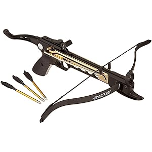 • Includes three aluminum arrows with metal tips and adjustable tactical sight.
