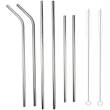 • Stainless Steel Drinking Straws, Strong Reusable Eco Friendly, Set of 6 with 2 Cleaning Brushes by Decodyne