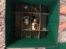 The size of the squares is absurdly small. They fit only the smallest of my christmas balls,a few handmade ornaments,and soft punishable ornaments,all without tissue space. I am not a large sized ornament person. I celebrate life's milestones and special memories with corresponding ornaments each year,so most are small or medium sized. I don't like big ornaments because tree branches for them are very limited on a real tree. Yet,this will not even fit my smallest hallmark ornament, the snoopy birdwatching I got this year,the box is the smallest of all my boxed ornaments, it is too big for this square. Yes, I can remove the rows to make them bigger,but the cardboard protects the ornaments and keeps the square sturdy. Also, I already have older similar boxes where I took that route and it defeated the purpose,they are just boxes now. I wanted good storage for my best ornaments,none of them fit. Even the small ornaments that fit,cannot be wrapped in tissue...ugh. seriously,a 1.