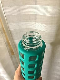 I really love this water bottle. Its really cute and pretty and very easy to drink out of. The water tastes good and its nice drinking out of glass. No plastic smell or taste. The handle on top is really good for carrying it around. When its filled with water it is a little heavy but that's not an issue. Its a great purchase for how much it costs