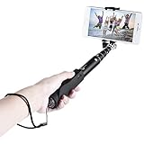 • Selfie Stick Monopod with Bluetooth Remote, iOS and Android compatible - With luxury pouch - Color: Black