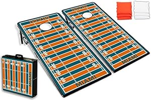 Cornhole Boards Bag Toss Game Set w/ Optional Bluetooth Speaker - Miami Football Graphic