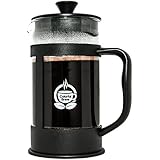 • BREWS 600 MILLILITER: 5 coffee cups or about 2 coffee mugs, 20 oz. of the best tasting delicious coffee. Perfect to use as a French press coffee maker or Tea Press. The carafe is made of durable, heat-resistant borosilicate glass. Stylish design and crystal shining chrome housing perfect as a gift and be the center piece in your kitchen