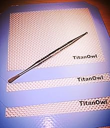 • Titanium Carving Tool GR2 + 3 Silicone Mat Platinum Cured + Non-stick Silicone Jar Container , Blue TitanOwl Pad 5.5"x4.5"