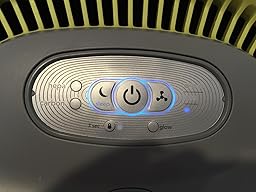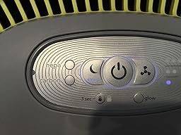 The controls and buttons are simple and easy to understand. There is a lock button so curious little fingers can't mess with the settings (as anyone who has had a toddler and dishwasher at the same time will know is important), there's a HEPA button, a carbon filter button, a fan button, a glow button, sleep mode button, the power, and the lock button.