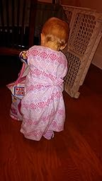 BUYER BEWARE: THIS PRODUCT IS HUGE! I even took into account the other buyers who said this item was very large. My daughter wears 18 month clothing and i ordered the size for 6-12 months (M) and it is still too large. I had to rubber band the extra fabric in the back just so she wouldnt trip over it (will include pictures). At least she can grow with the product though, which is the only reason I'm not too angry. Other than that the item seems to be made very well and is very thick and warm, great for cold winter nights to wear over jammies!