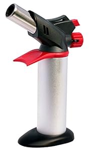 Not sure if I can say this but if ever there was a sexy-looking kitchen appliance – this is it! Heats brilliantly with a big flame on a comfortable angle when you hold it. The red hand-shield protector keeps your fingers well away from the pointy end too. It is sturdy, well balanced and the aluminum grip feels good under your hand.I made charred egg plant dip for the first time by first heating the eggplant in the microwave for 2 minutes, then charring the eggplant all over (which is easy seeing that this blowtorch has a nice, big flame), allowing it to cool down a little, then scraping the skin off but leaving a few burnt bits for the charred flavor. Then I put it back into the microwave for another 2-3 minutes to soften, then into the food processor with garlic, salt, black pepper, olive oil, lemon juice and a touch of Tabasco sauce. Blitzed it and had it with crackers. Fantastic!