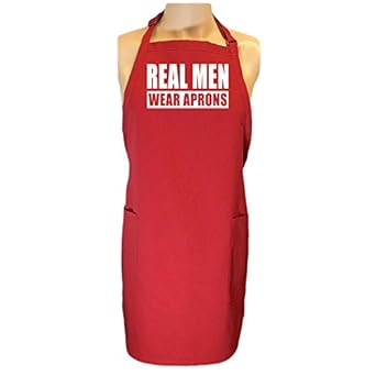 The Man in your life will love wearing this apron! Design features "Real Men Wear Aprons". This design is featured on an apron that is made from durable 7.5 oz., 65/35 poly-cotton twill, it features 2 large patch pockets and an adjustable neck, plus extra long 39 inch ties that make this apron simple yet perfect for almost any use. Size: 23" W x 30" L. Printed in the USA on an imported apron.