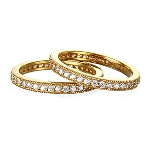 Sterling Silver Gold Plate White CZ Eternity Double Band Ring Set