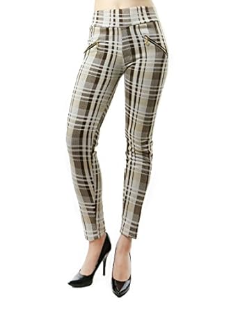 Womens Fashion Stretch Ankle Length Pants with Zipper Accent
