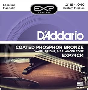 This item: D'Addario EXP74CM Coated Phosphor Bronze Mandolin Strings, Custom Medium, 11.5-40