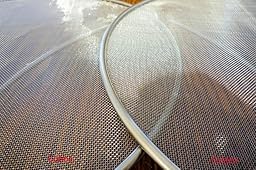 Although I've become a fan of the new Culina line of products, when this first arrived the spouse and self had a parting of the ways...he liked the extra sturdy frame and footing but I was hesitant to adopt this product because of the larger splatter screen. Our prior model from another big brand, had a much smaller mesh. While it is true, the other one(s) (we actually had four...2 of this size and 2 in subsequent smaller sizes) lacked the footer (which is a ridiculously useful idea!) and had a smaller and much less comfortable handle, I thought the smaller mesh screen would capture more.