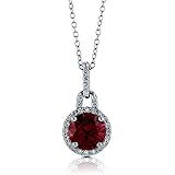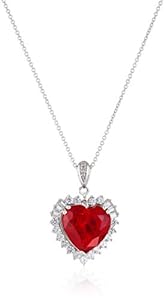 This item: Sterling Silver Created Ruby Baguette Round Created White Sapphire Diamond Heart Pendant Necklace, 18"