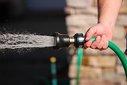 I really like this style garden hose nozzle; I have purchased several through the years (Craftsman sells at a higher price). It is well-balanced; easily shuts off completely (doesn't drip!), and you have your choice of spray patterns, from concentrated to bubbling.