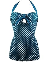 Cocohsip Retro Vintage One Piece Monokini Navy Blue Polka Floral Print Swimsuits Swimwear