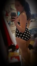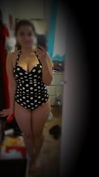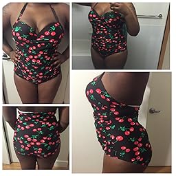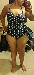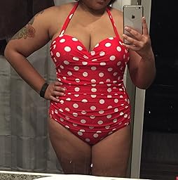 Now for the suit itself. It is DIVINE! It is my favorite swimsuit ever! It makes my curves look so great and the retro style is quite flattering for just about any shape. As I said earlier, the cups are molded, which I love. The the material is soft and has a nice feel to it. It has just the right amount of give while also providing some figure control. The seams are secure. The ruching helps hide any tummy issues and really adds to the overall retro look. It also arrived two days after I ordered it! I plan to order another one, probably the red polka dot, but will try the XXL size instead. Hope this helps you bathing beauties! Order with confidence.