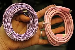 I was really excited to get these because they seem to be really well made cables. The long 10 foot length make it easier to use my phone while it is charging, without me having to be tethered right next to a power outlet. The ends are covered with a rubber coating which provides a nice sturdy grip, and the entire cable is covered in a nylon sheathing. The cables provide a nice tight connection into my devices and charge our phones and tablets as fast as the original factory cables. There are multiple bright and colorful combinations available. Overall, I really like these cables, due to the quality, length and color choices. I would recommend them to anybody.