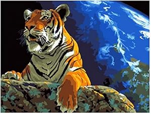 Tiger Looking up-DIY Painting By Numbers Kit 16x20 inch Canvas Diy digital oil painting animal painting(with wood frame)