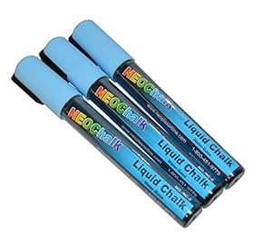 NeoChalk Liquid Chalk Marker Chisel Tip - Neon Blue - Set of 3 Markers