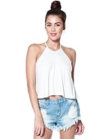 Black Woman String Neck Halter Crop Top