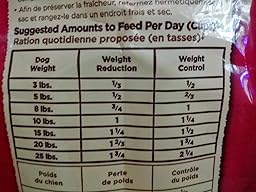 Feeding Guidelines These are the recommended feeding amounts based on the ideal body condition for small and toy breed Adult Dogs of various weights. Individual Dogs’ energy requirements may differ. Adjust the amount fed to obtain or maintain your Dog’s optimum weight. If feeding Nutro Dog Food for the first time, we suggest you blend increasing amounts of Nutro Small Breed Adult Weight Management Chicken, Whole Brown Rice and Oatmeal Formula Dog Food with your old food for six days. Keep fresh drinking water available at all times, provide plenty of exercise and see your veterinarian regularly. Serve dry or lightly moistened. To help maintain freshness, we recommend sealing the bag tightly and storing it in a cool, dry location. Dog weight/suggested amount to feed per day (cups)† 3 lbs.: Weight Reduction: 1/2 Weight Control: 2/3 5 lbs.: Weight Reduction: 2/3 Weight Control: 3/4 8 lbs.: Weight Reduction: 3/4 Weight Control: 1 10 lbs.: Weight Reduction: 1 Weight Control: 1 1/4 15 lbs.: Weight Reduction: 1 1/3 Weight Control: 1 2/3 20 lbs.: Weight Reduction: 1 3/4 Weight Control: 2 25 lbs.: Weight Reduction: 2 Weight Control: 2 1/3 † Use a standard 8-oz. measuring cup, which holds 2.57 oz. of Nutro Small Breed Adult Weight Management Chicken, Whole Brown Rice and Oatmeal Formula Dog Food. Underweight: Increase the feeding amount to achieve an ideal weight or feed Nutro Small Breed Adult Dog Food. Ideal Weight: Maintain feeding at the current activity level. Overweight: Feed at the weight reduction level for a target body weight.