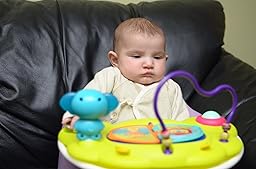 The very first thing our boy did was break the part on the little elephant that holds it in the play top. I had installed the elephant securely. The next thing I knew, he gave it a big yank and the little white holder pieces broke off and went flying over his head. Luckily, they did not hit anybody. I am not so sure about this play top now. I am reserving judgment and watching him carefully with it.