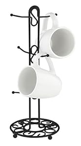 • Black style mug tree holds coffee mugs and teacups for easy access on counter