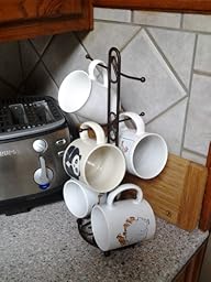 I read a LOT of reviews on various mug trees before deciding on this one. It's just what I wanted: sturdy, nicely made, great finish, and looks great without taking up too much space. If needed, it would even fit under my kitchen cabinets (but I like having it on the outside edge of the countertop). VERY useful & it looks great; the picture doesn't do it justice. I've just posted a photo, so you can see it in a "Real World" setting. Love it; highly recommended for its quality AND the terrific price. Very happy!