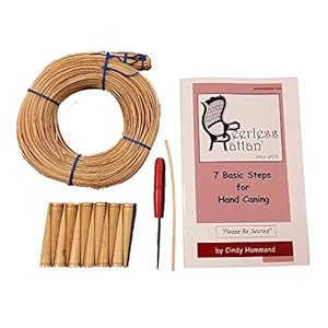 • Complete Chair Caning Kit, Includes 270' of Cane, Awl, 12 Pegs, Full Color Instruction Booklet, Pegging Material and 4mm Binder Strip (Medium 3mm)