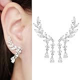 • Sweep up CZ Crystal Ear Vine Wrap Pin Ear Cuffs Climbers Hook Earrings