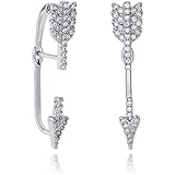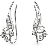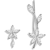 • 925 Sterling Silver Sparkling White Faceted Swarovski Crystal Floral Vine Cuff Earrings Fashion Jewelry for Women, Teens, Girls - Nickel Free