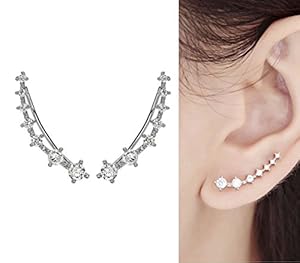 • .925 Sterling Silver Cz Ear Climber Earrings with Fish Hook